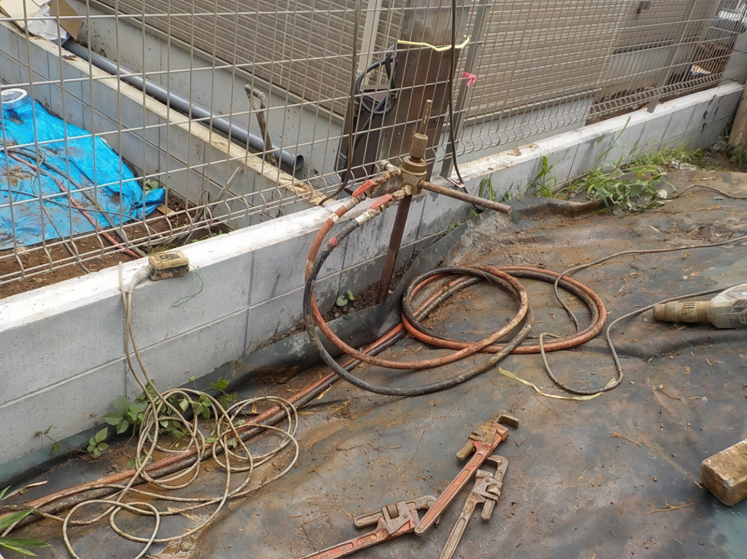 埼玉県所沢市の分譲地で、背後に山があり、下側に沼があるため、水の流れが分譲地内に溢れ出しているという状況でした。<br>そのため、新築工事のうち外構工事がストップしている状況でした。<br>その溢れ出している「水」を止めてもらいたいという依頼でした。<br>そこで、山側からの水の流れを変え、水道(みずみち)を変えた水を下側の沼へ迂回させる目的の作業となりました。<br>現場は、裏の市道側に壁を作り、迂回させる計画を取りました。<br><br>結果、分譲敷地内に水が溢れ出す状況はなくなり、ストップしていた外構工事も難なく作業が進んだということです。<br><br>これと似た現場で、共同住宅新築工事で試掘した処、GL-1.8mあたりで水の湧き出しが激しい現場の相談がありました。<br>メーカーもいろいろと対策を考えたようですが、止水作業の最善策は薬液注入ではないかと検討しています。<br><br>このような止水対策は、東京都内、神奈川県内等、日本全国水位が高い地域では必然策になってきています。
